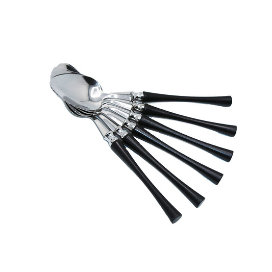 Tea Spoon 6Pc Black/White Plastic Handle Jiale