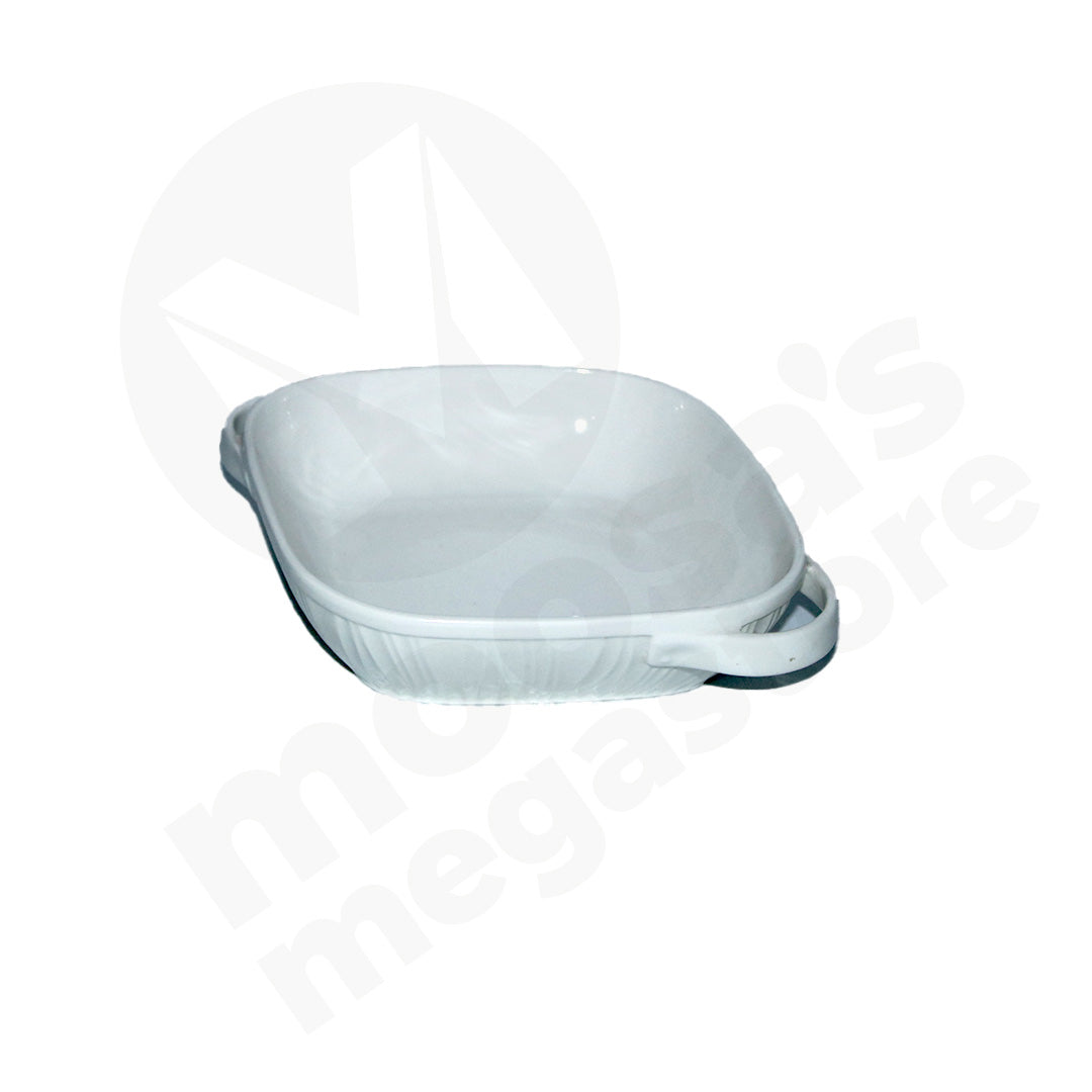 Bowl 21X20Cm Square White Embossed Shallow 2Handle