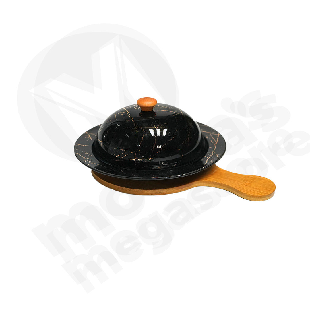 Butter Dish 23.5Cm Round Bamboo Board Marble Lk