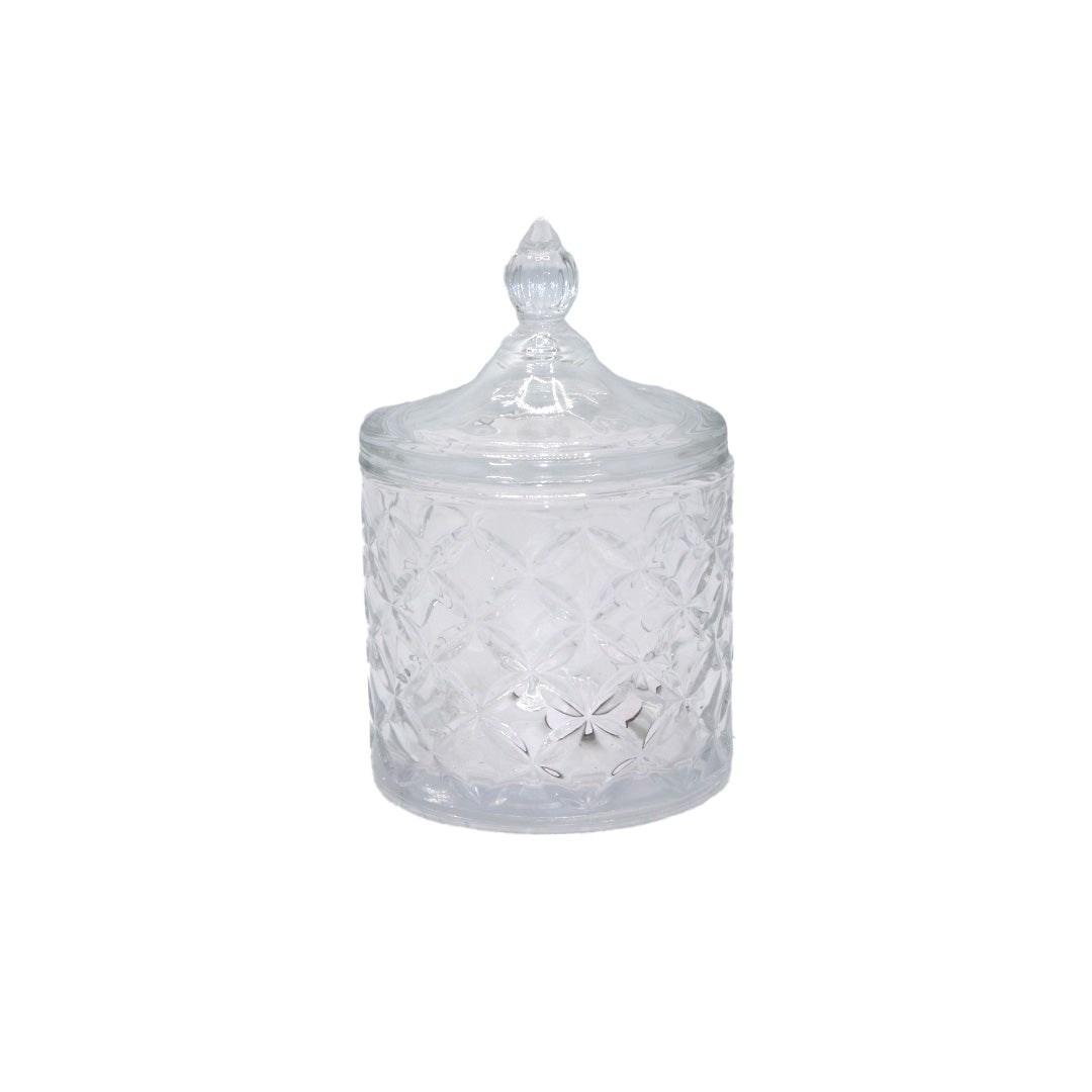 This clear embossed candy jar features a beautiful dragonfly design, adding a touch of elegance to your kitchen or dining space. Its compact size of 9x10cm allows for easy storage and display of your favorite sweets and treats. Enjoy a delightful and organized candy experience.