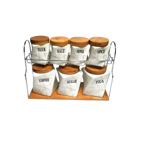 Canister Set 7Pc With Bamboo Rack Marble Look