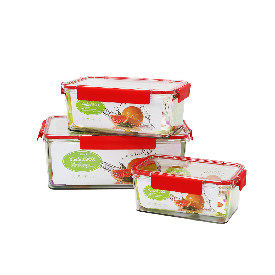 Container 3Pc 27X18X10Cm Clear Lock Lid