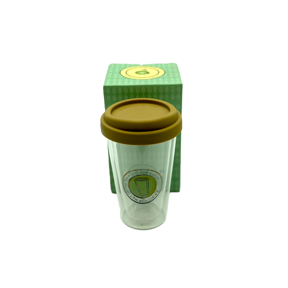 Cup 14X9Cm Double Layer Glass With Silcone Lid
