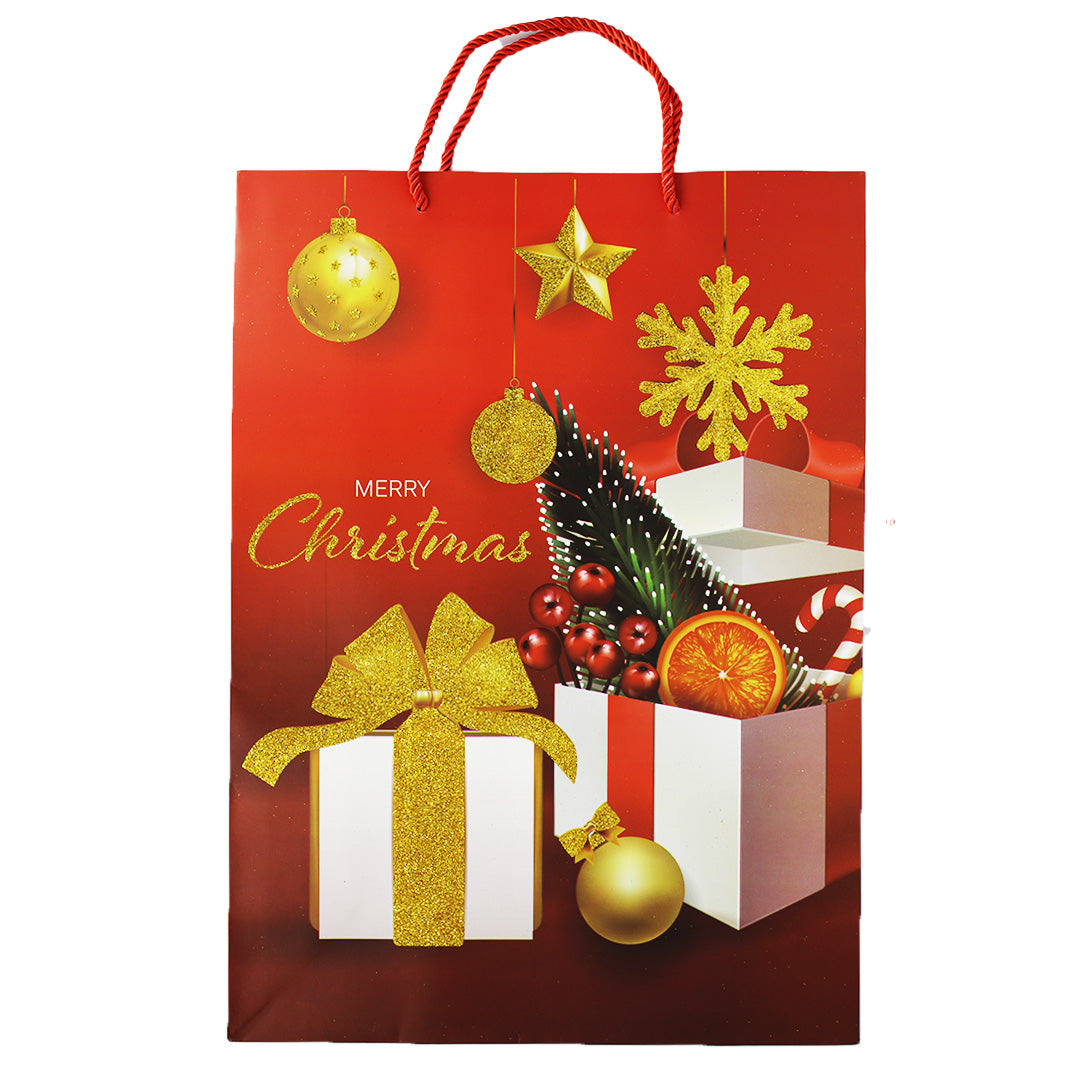 This festive X-Mas gift bag measures 23x18x10cm, making it the perfect size for all your holiday gifts. Made from high-quality materials, it will withstand the weight of your presents and add a touch of holiday cheer to any gift. Give your loved ones a special gift wrapped in this adorable bag.
