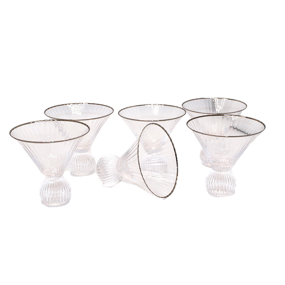 Ice Cream Bowl 6Pc 215Ml Clr Silver Rim Ball Base