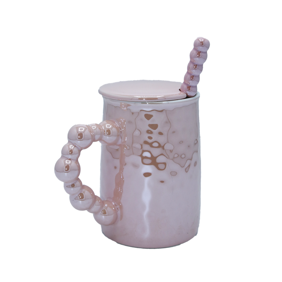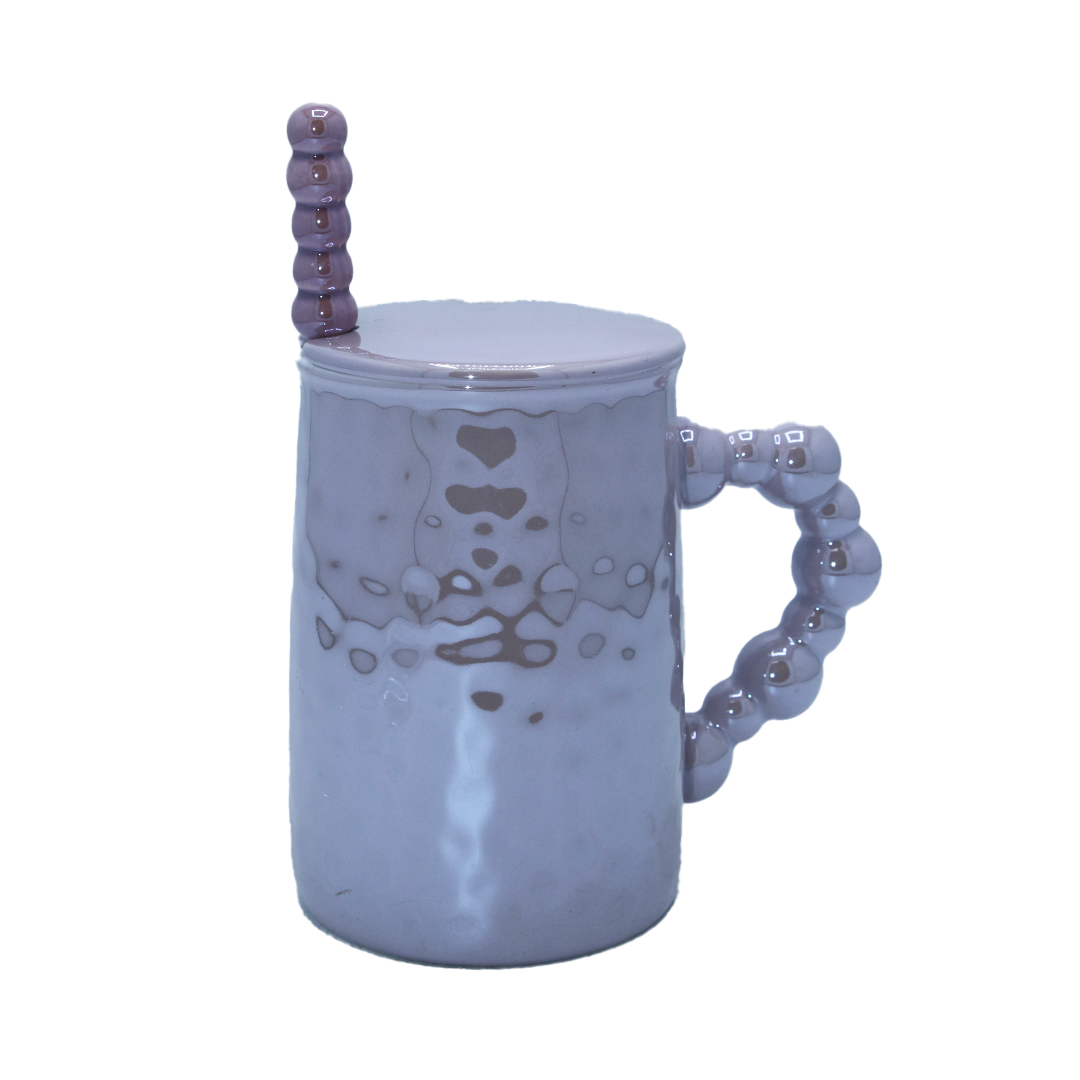 Mug With Lid & Spoon 12X8Cm Ceramic
