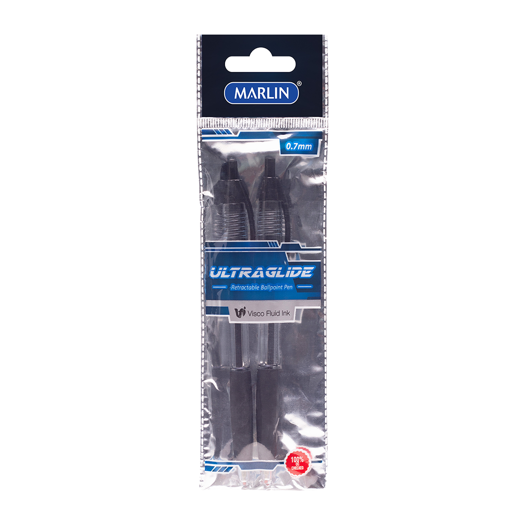 Marlin Pen 2Pc Retractable Rubber Grip Black