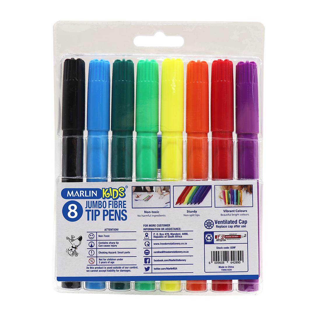 Marlin Pen 8Pc Fibre Tip Jumbo Assorted V