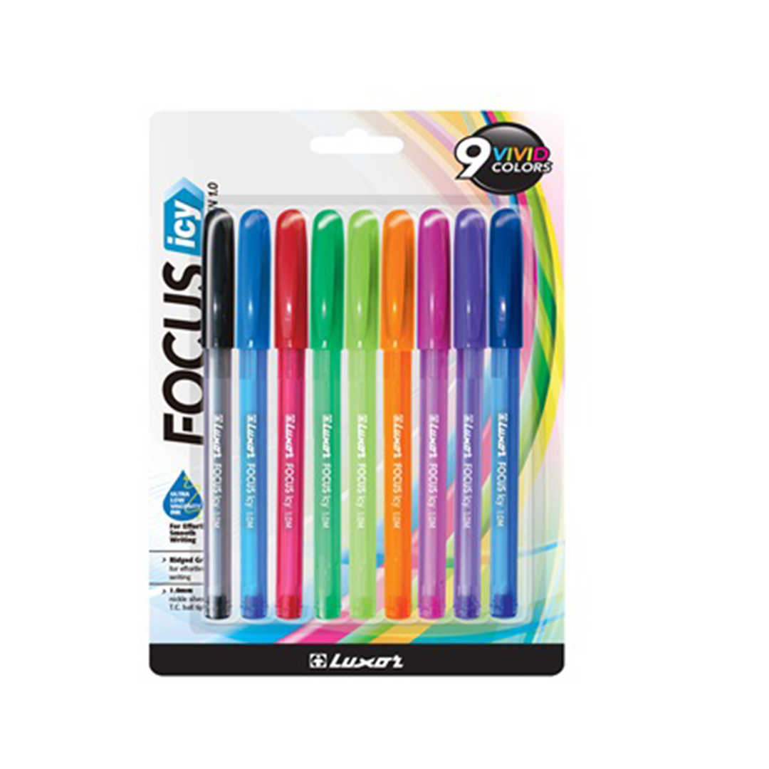 Pen Ball Point 9Pc Assorted. Colours Luxor