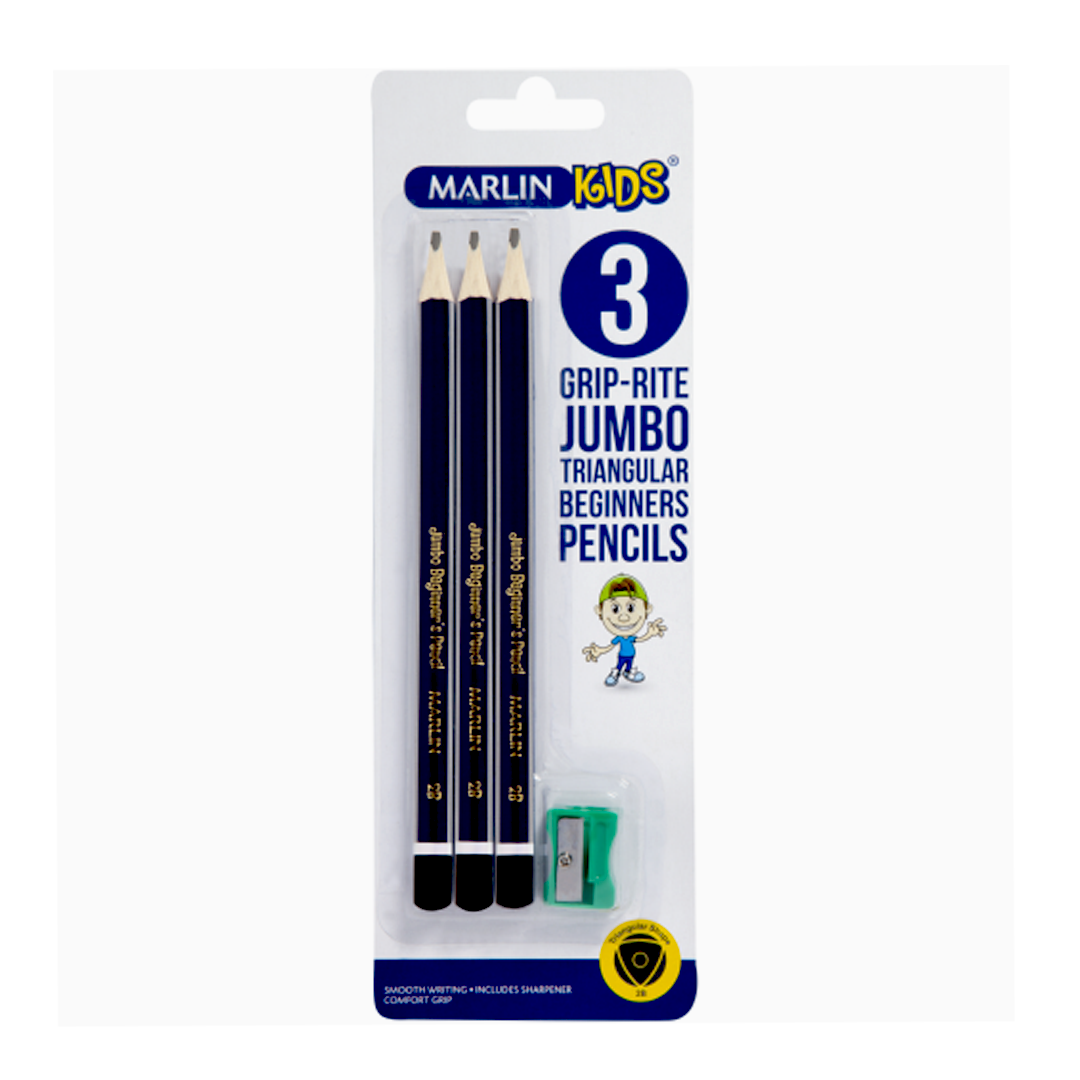 The Marlin Jumbo Triangular Pencils come in a pack of three. With their jumbo size and triangular shape, these pencils provide a comfortable grip and reduce hand fatigue during extended writing or drawing sessions. They are suitable for students, artists, or anyone who prefers a larger pencil size.
