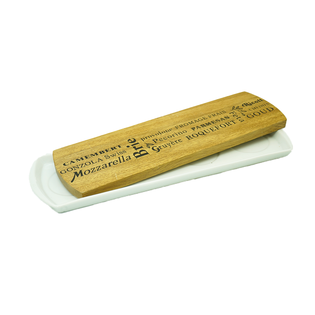 Platter Serving 38X12Cm Rect White With Woodn Tray