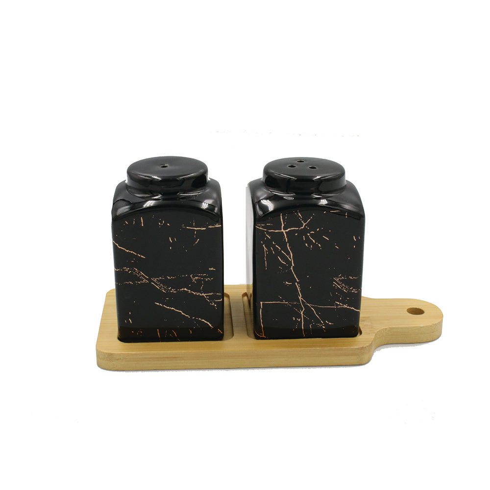 Salt & Pepper 2Pc Rnd/Sqr Bamboo Tray Marble Look