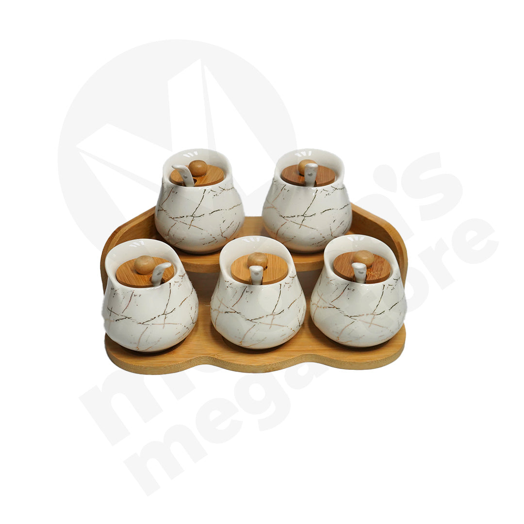 Spice Set 5Pc With Bamboo Rack & Lid Marble Look