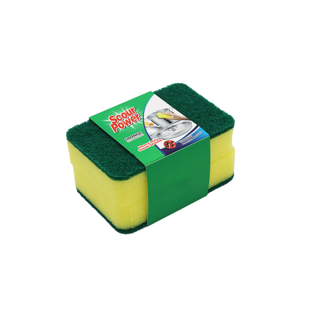 Sponge Scourer 2Pc 10X7Cm Green/Yellow Scour Power