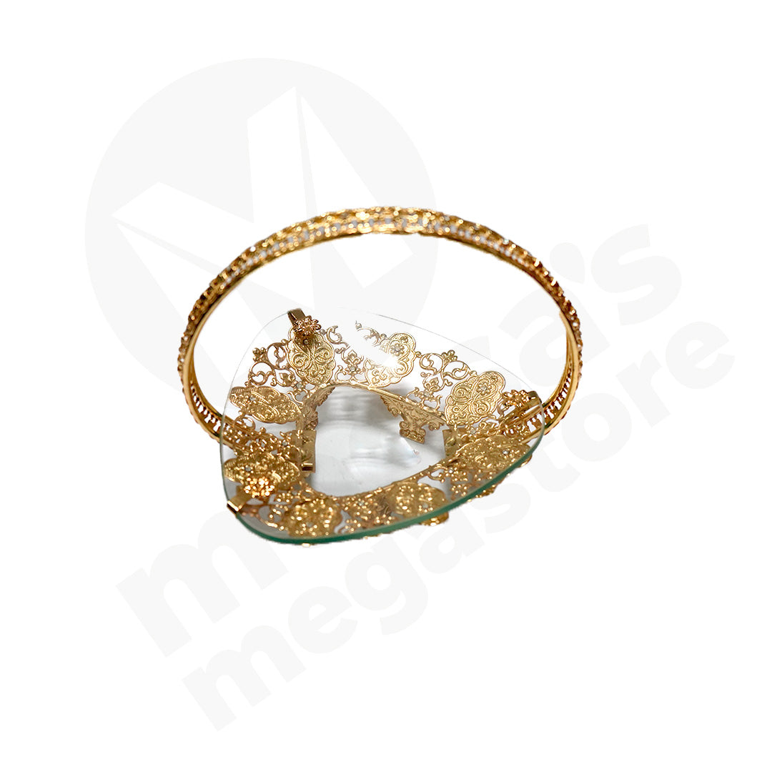 Tray19X17Cm Tri Serving Fancy Metal/Glass With Hnd