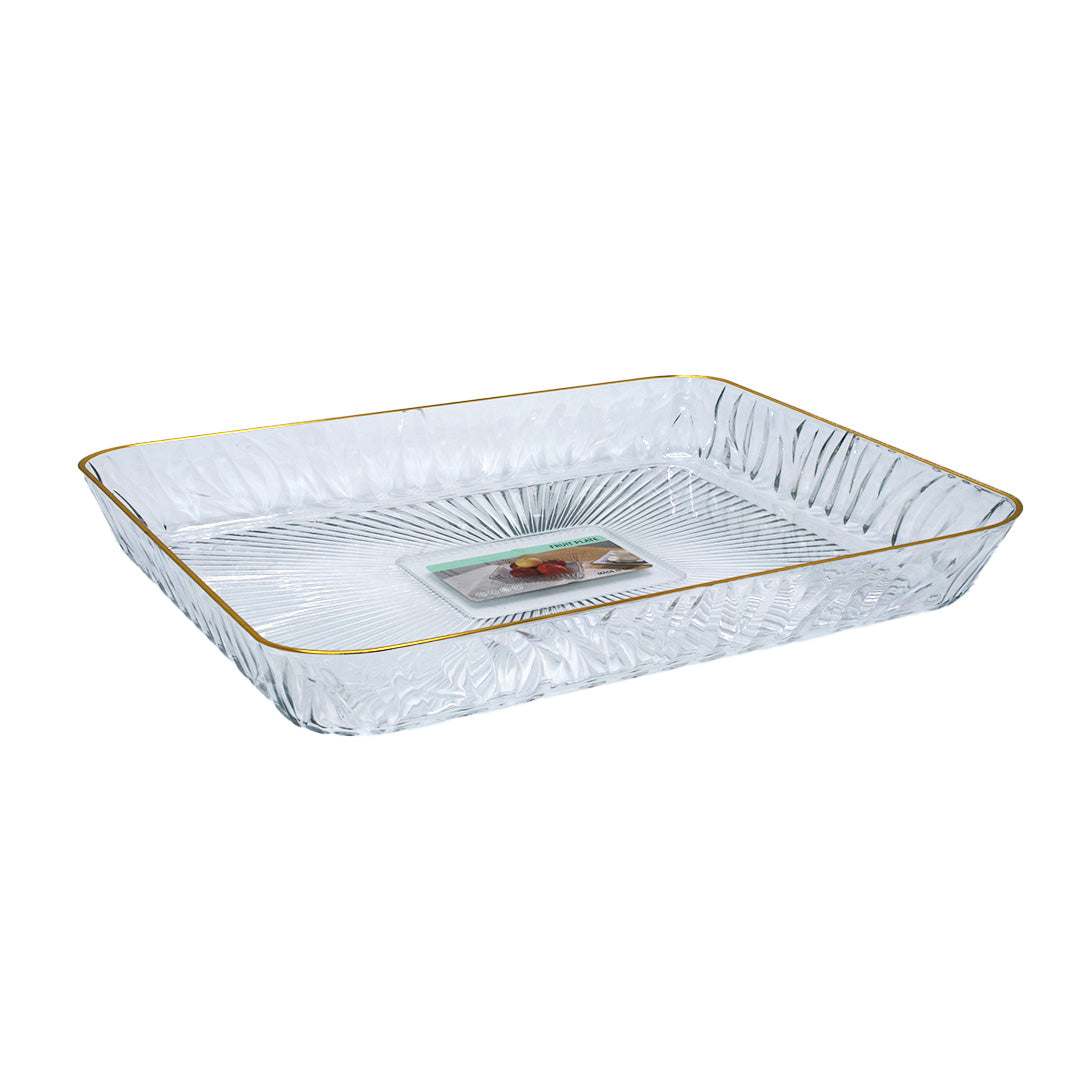 Tray 28X18Cm Rect Clear Embossed Plastic Gold Rim