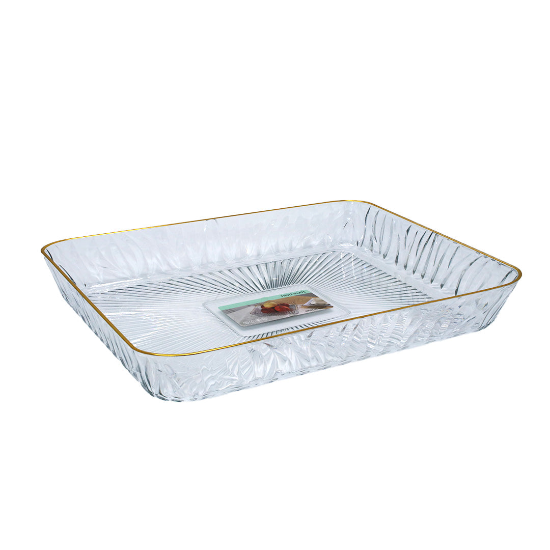 Tray 38X28X6Cm Rect Clear Emboss Plastic Gold Rim
