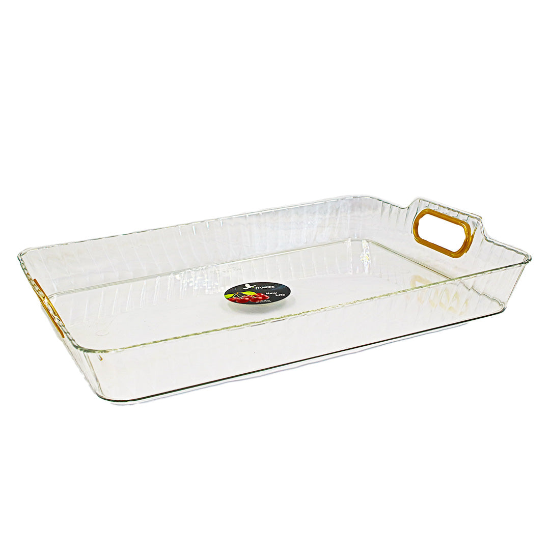 Tray 39X29Cm Rect Clear Emboss Plastic Gold Handle